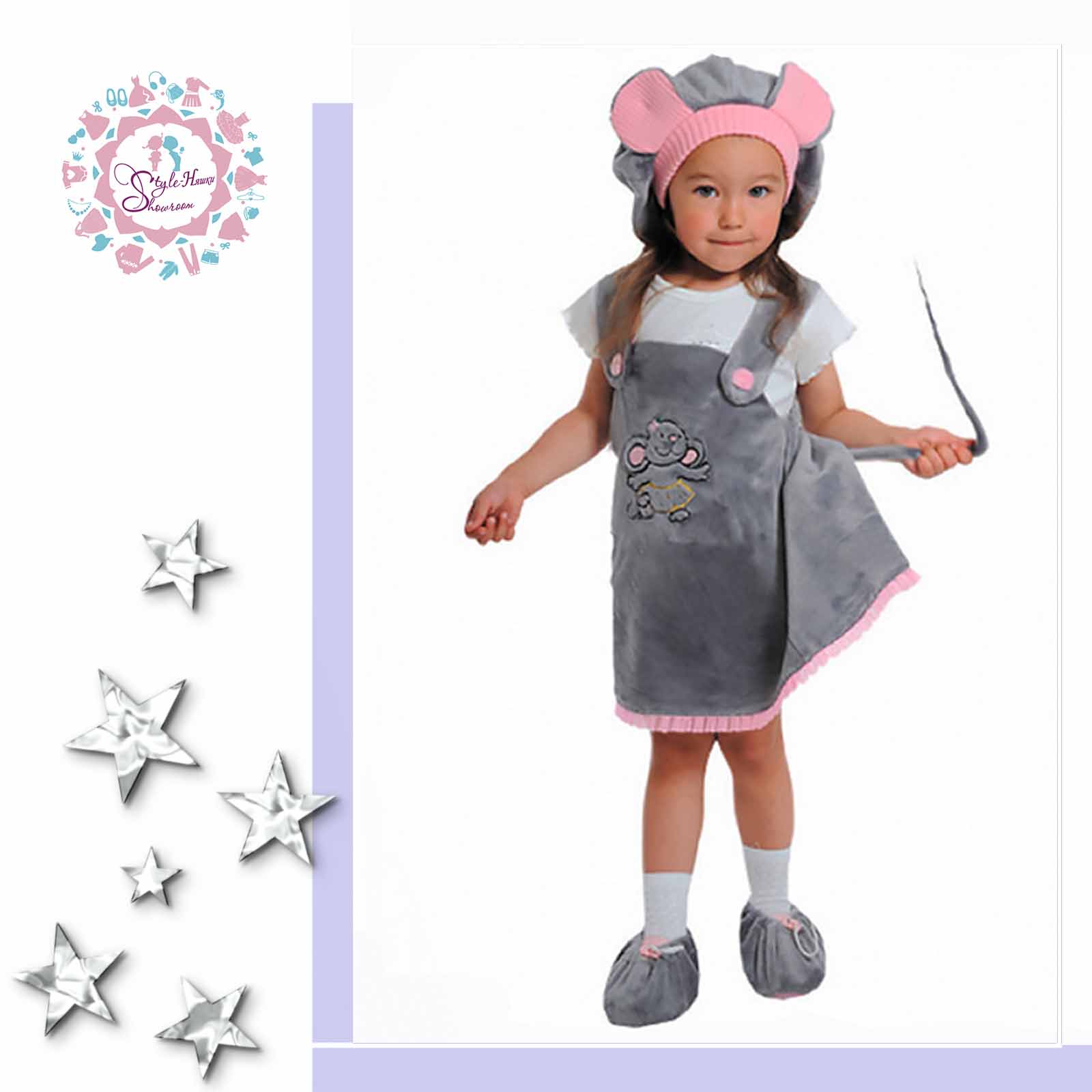 - Костюм "Мышка" Размер 104см Состоит из: Шапочка Сарафан (длина 50см, талия 60см) Пинетки (длина 17см)