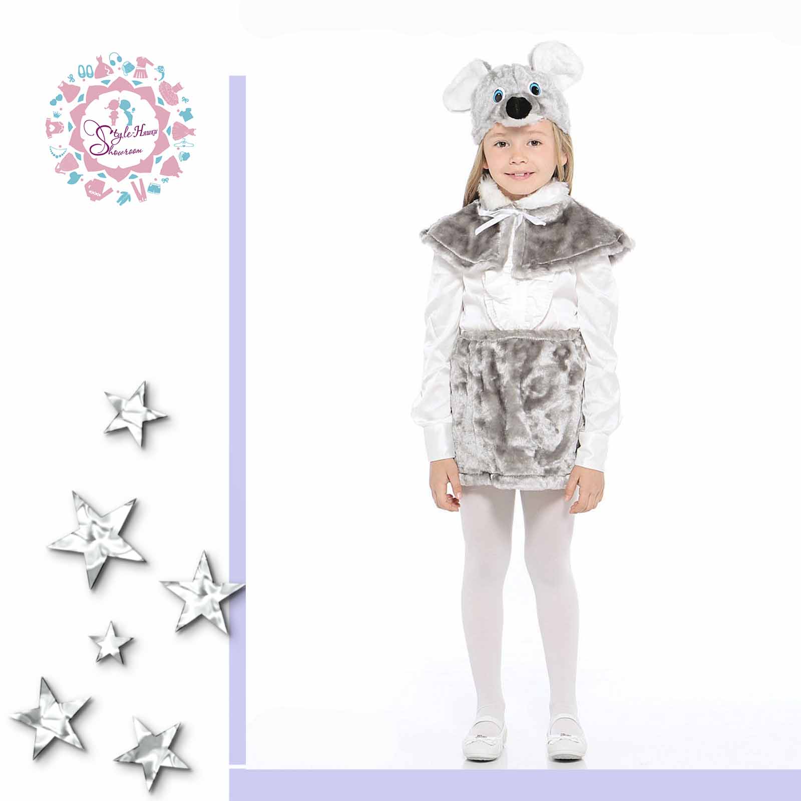 - Костюм "Серая мышка" Размер 110-116см Состоит из: Шапочка Накидка (длина 19см) Юбочка (длина 28см, талия 46см) Белая водолазка